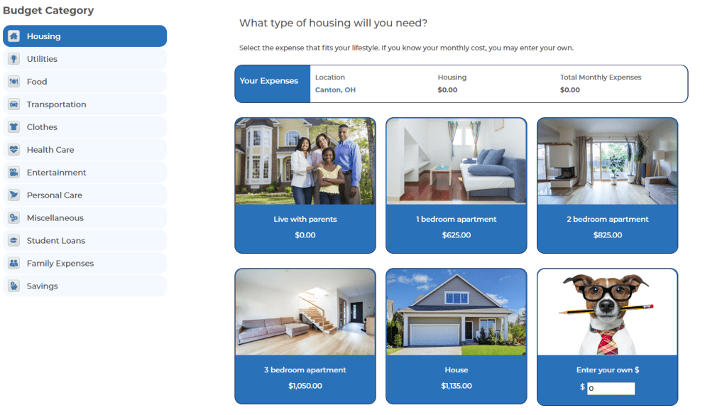 Ohio Means Jobs has fantastic Ohio Budget Calculators. There are 2 to pick from- one in which you can customize exact numbers and one that estimates a range.