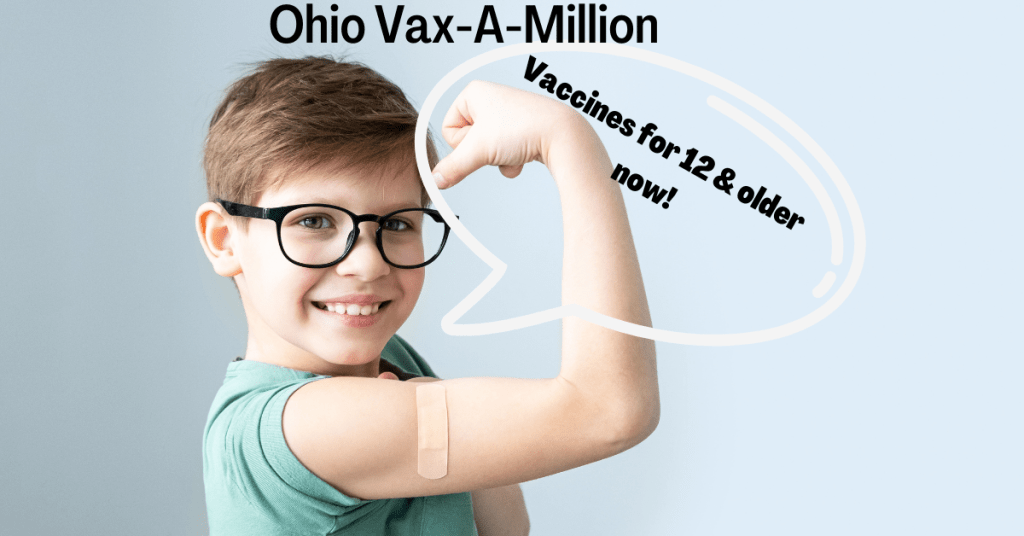 On May 18th- an electronic portal for those 12- 17 years old who have received a COVID-19 vaccine will be open to register for the university scholarship lottery. Vaccinated youth can receive a full 4-year scholarship to any one of Ohio’s state universities including tuition, room & board, and books if selected.