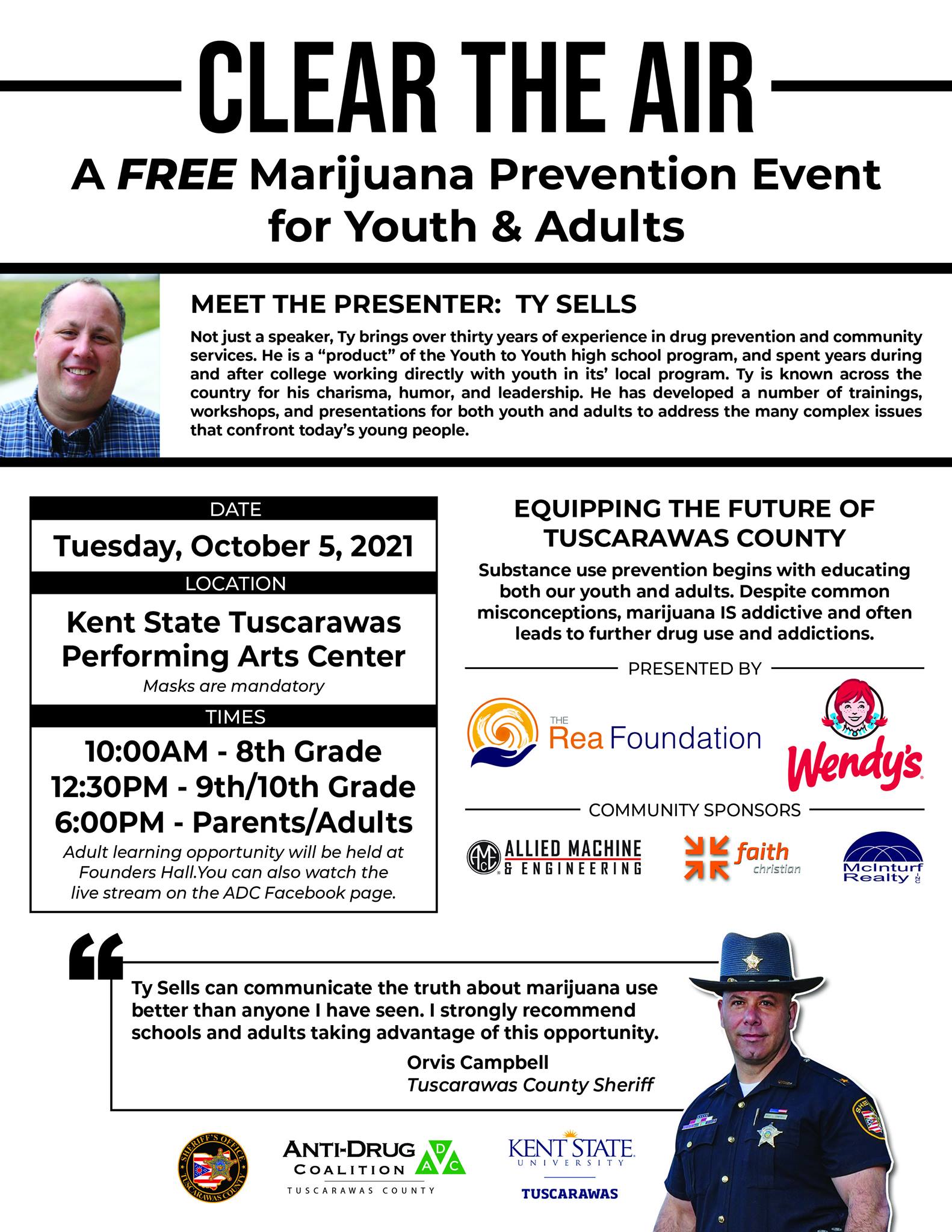 Don’t miss this free event October 5 at the PAC! There will also be an adult session in the evening in Founders Hall. Free Marijuana Prevention Event