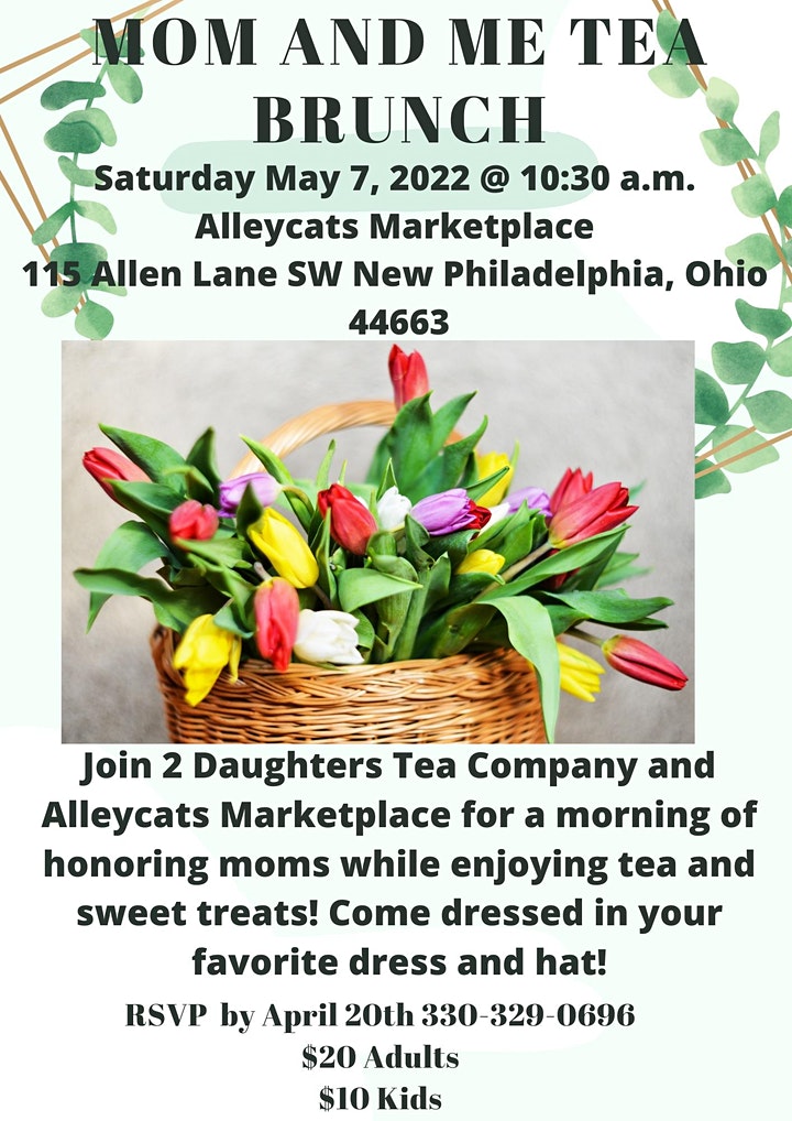 Please join 2 Daughters Tea Company and Alleycats Marketplace for a brunch celebration! Come out to enjoy tea and sweet treats as we share stories and advice on motherhood. We look forward to seeing you!
