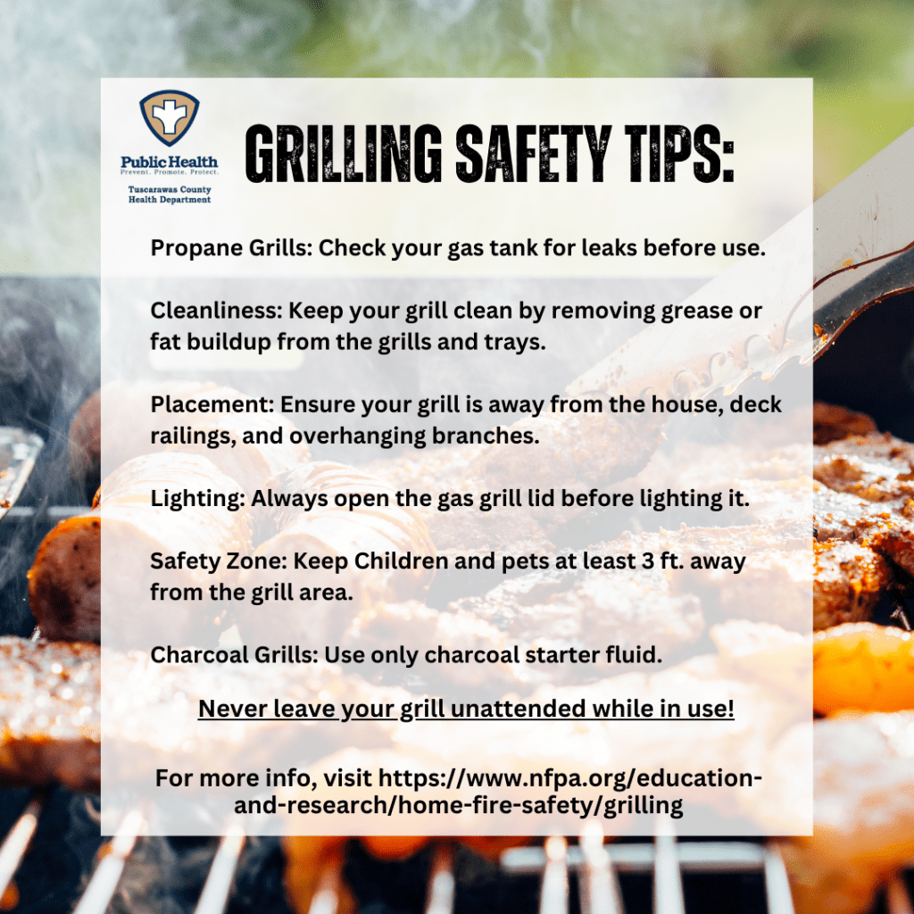 It’s August and nothing extends the summer like throwing dinner on the grill. Whether you’re cooking up hot dogs or veggie burgers, it’s important to do it safely. TCHD wants you to check out the tips below for a tasty and SAFE cookout.