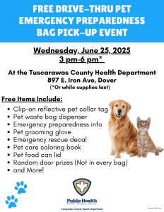 The Tuscarawas County Health Department aims to make sure your animals are ready in case you ever need to evacuate your home due to weather, wildfires, power outages, or other emergencies.