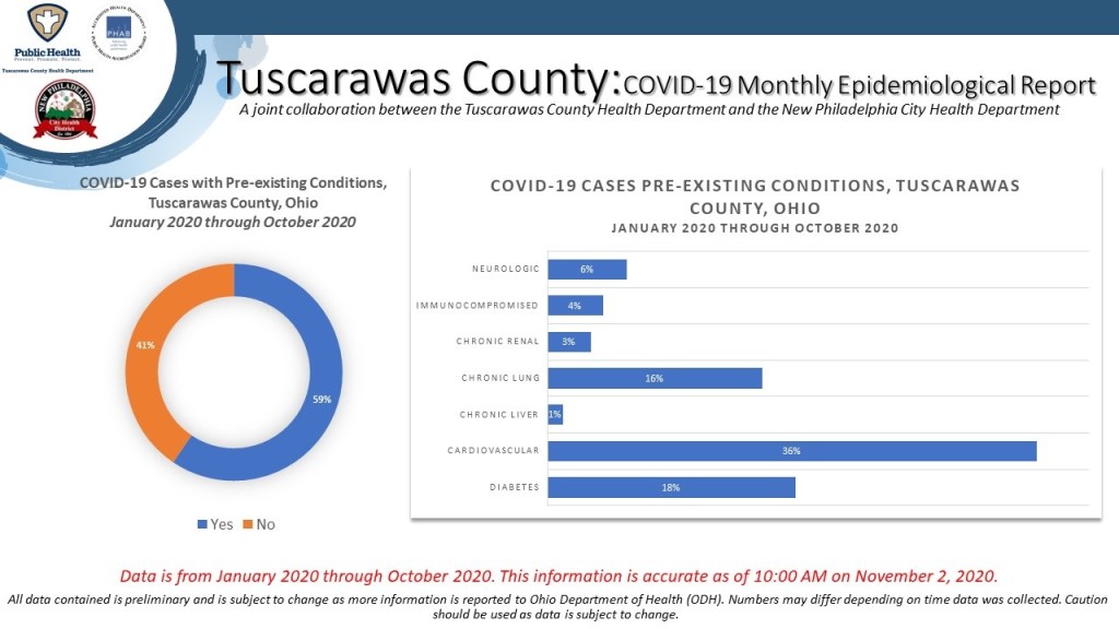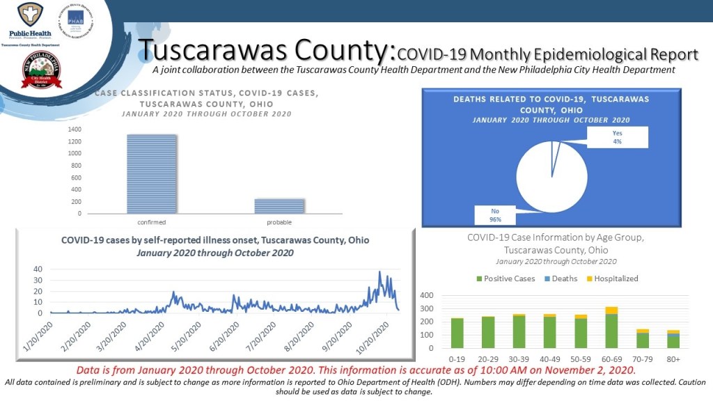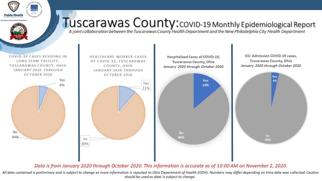 (Dover, Ohio) – The series of five infographics was prepared by the epidemiology staff and includes information about cases from January 2020 through October 31, 2020.