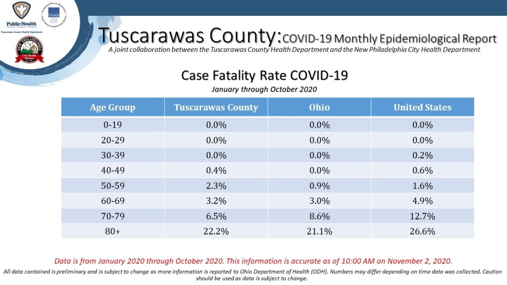 “We are sharing this information as part of our commitment to provide timely and accurate data to the public,” explained Katie Seward, Tuscarawas County Health Commissioner. “By sharing this data, we are providing area residents with valuable insights for making decisions about steps we can all take to help mitigate the spread of COVID-19. We can get through this by working together to follow the safety protocols to wear masks, social distance, avoid large gatherings, wash hands frequently, and stay home if you are sick.”