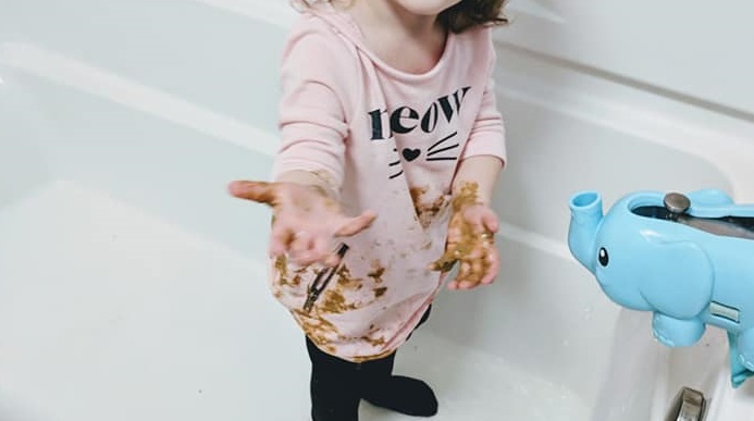 As I got closer, my eyes began to bulge out of my head when I realized that she had put her hands down her diaper after pooping and thought she would become Picasso and draw on her outfit with the poop. I don’t think I’ve ever put Myla down so fast. I picked her up and literally put her in the bathtub, clothes and all. So, after a 30-minute bath and clothes scrubbing session we were good for the day and ventured on.