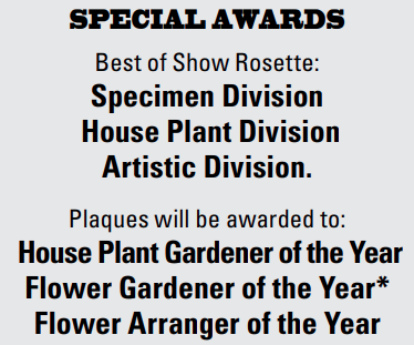 - Specimen Division (Aromatic herbs, daisies, cosmos, dahlias, marigolds, petunias, etc.)