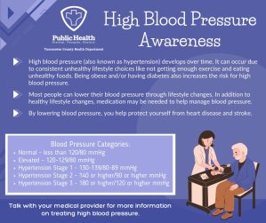 For more information about blood pressure, talk with your medical provider. If you need a medical provider, call the medical office at the Tuscarawas County Health Department, 330-343-5555, ext. 1810 to make an appointment.
