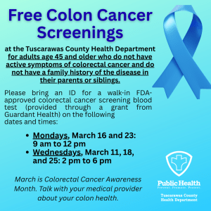 This information about colorectal cancer awareness and screening options is brought to you in partnership with the Tuscarawas County Health Department.