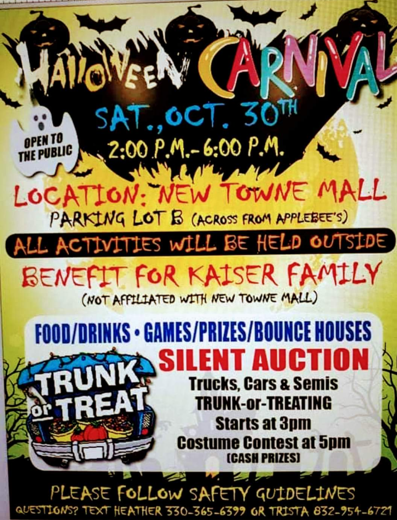 The event will be held from 2:00 p.m. – 6:00 p.m. in Parking Lot B across from Applebees. Activities will include a semi-truck show along with other big trucks and cars. Food, drinks, games, prizes, a bounce house, silent auction and more will also take place at the event. All activities will be held outside. Trunk or treating will begin at 3:00 p.m. with a costume contest at 5:00 p.m. where cash prizes will be awarded.